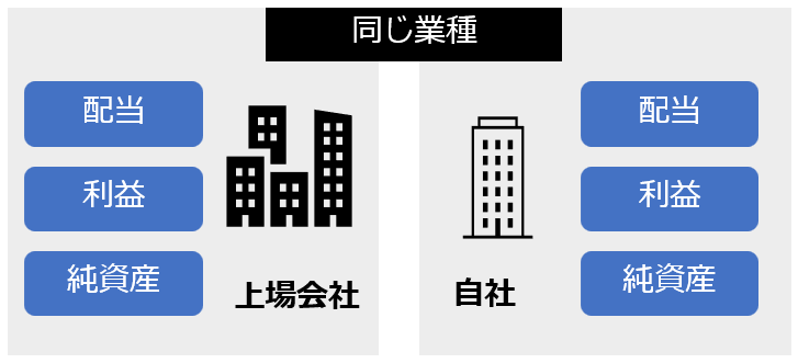 自社と同じ業種の上場会社の株価の平均値と比較して評価会社の株価を算定する方法。