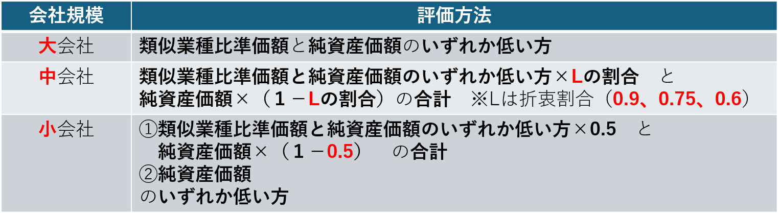 会社規模に応じて、評価方法を適用する。