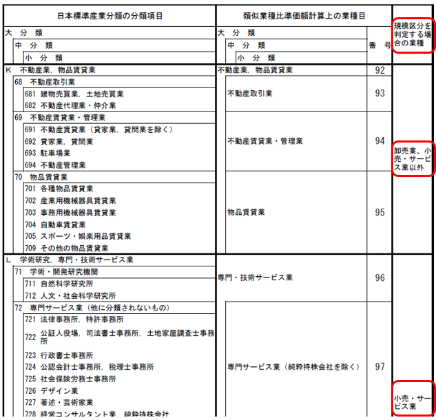 【参考】日本標準産業分類の分類項目と類似業種比準価額計算上の業種目との対比表